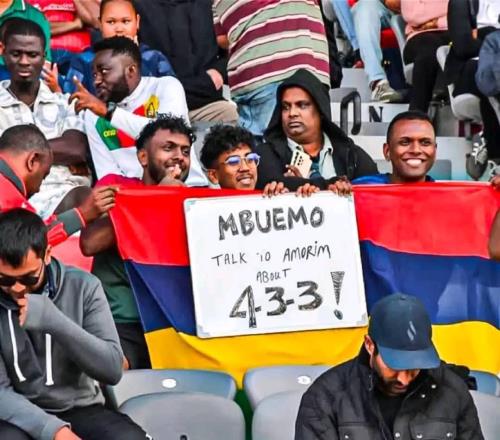 雷速体育10月9报道 世界杯非洲区预选赛第9轮,喀麦隆客场2-0战胜毛里求斯。在比赛看台上,有毛里求斯球迷举标...