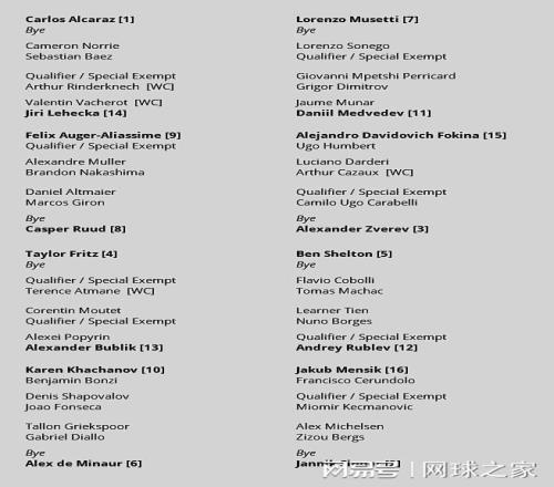 巴黎大师赛出签表,辛纳战男仆,华人包揽广网四强,莱巴临阵退赛